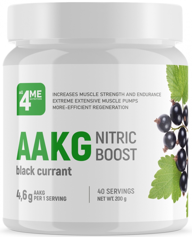 Для наилучших спортивных результатов сочетайте AAKG NITRIC BOOST с другими добавками ALL4ME NUTRITION: креатином, бета-аланином, гуараной, BCAA.