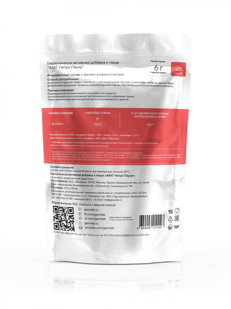 Интернет-магазин Body-Pit.Life предлагает купить Аминокислота GEON AAKG Nitro Power 150 гр в Нерюнгри.