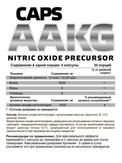 AAKG эффективен для вывода мочевины и белковых шлаков, как и аминокислота аргинин. Для большей эффективности принимать его следует до тренинга или на ночь, чтобы обеспечить секрецию гормона роста. Отзывы профессиональных выступающих доказывают эффективность приема AAKG 120 в капсулах для прироста силовых показателей в жиме лежа, а также увеличить общую пиковую силовую нагрузку во время тренировки.