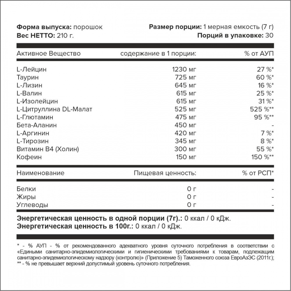 Рекомендации: для достижения наилучшего результата принимайте продукт в первой половине дня, либо за 15-20 минут до физической активности, добавив и размешав 1-2 мерные емкости в 150-300 мл холодной воды.