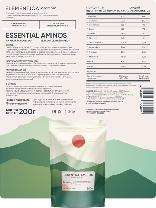 Интернет-магазин Body-Pit.Life предлагает купить Аминокислота ELEMENTICA ЕАА 200 гр в Нерюнгри.