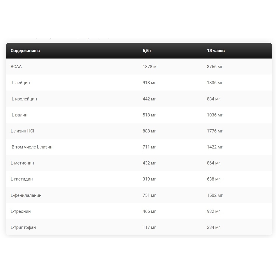 Комплекс БЦАА: 1878 мг