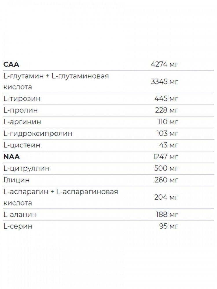 | L-Глютамин + L-Глутаминовая кислота: | 3345 мг |