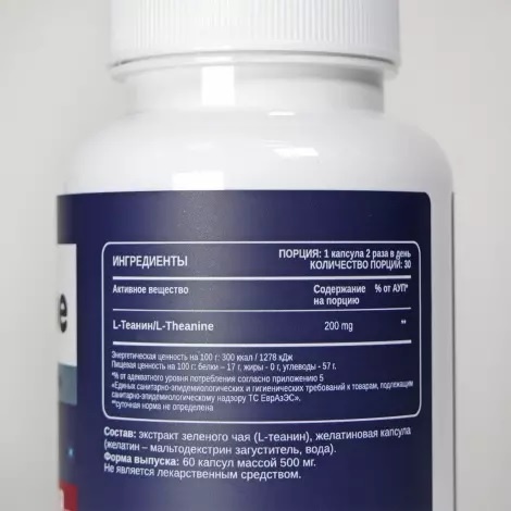 Активное вещество: L-Теанин/L-Theanine, 200 mg