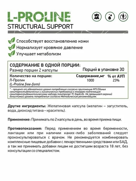 L-пролин (в свободной форме): 1000 мг