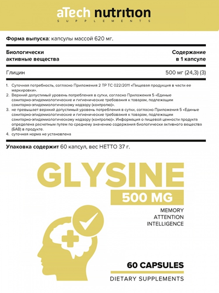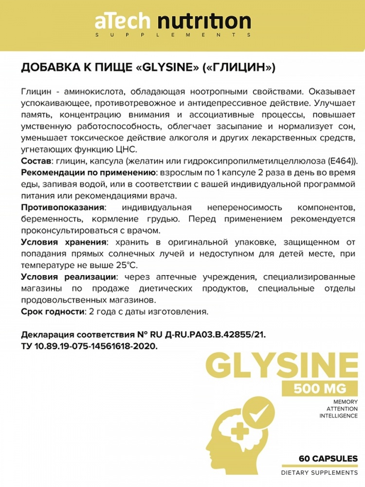 Интернет-магазин Body-Pit.Life предлагает купить Антиоксидант aTech Nutrition Glycine 60 таблеток в Нерюнгри.