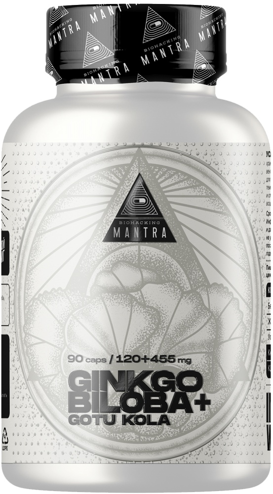Антиоксидант Biohacking Mantra GINKGO-BILOBA 120mg + GOTU KOLA 455 мг 90 капсул