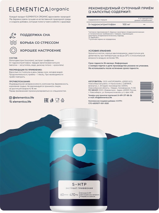 Интернет-магазин Body-Pit.Life предлагает купить Антиоксидант ELEMENTICA 5-HTP 50 мг 60 капсул в Нерюнгри.