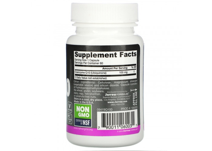 Коэнзим Q10 от компании Jarrow Formulas производится путем ферментации и состоит исключительно из натуральных компонентов в состоянии транс-конфигурации, аналогичных тем, которые синтезируются в организме человека.