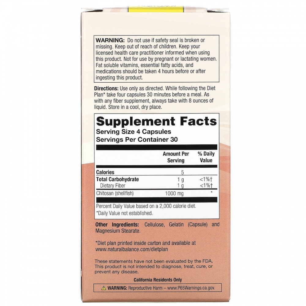 Некоторые исследования показывают, что диета, богатая клетчаткой, помогает уменьшить время прохождения пищи через пищеварительную систему, что позволяет сократить потребление жира. Кроме того, хитозан не переваривается и, следовательно, не имеет калорийности. Клетчатка, принятая перед едой, может обеспечивать питательную поддержку для здоровой коррекции веса.