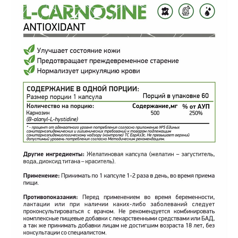 Антиоксидант NaturalSupp L-Carnosine 60 капсул