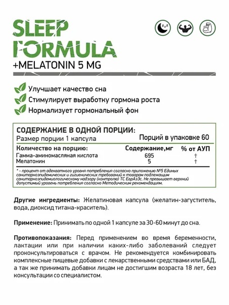 Применение: Принимать по 1 капсуле за 30-60 минут до сна.