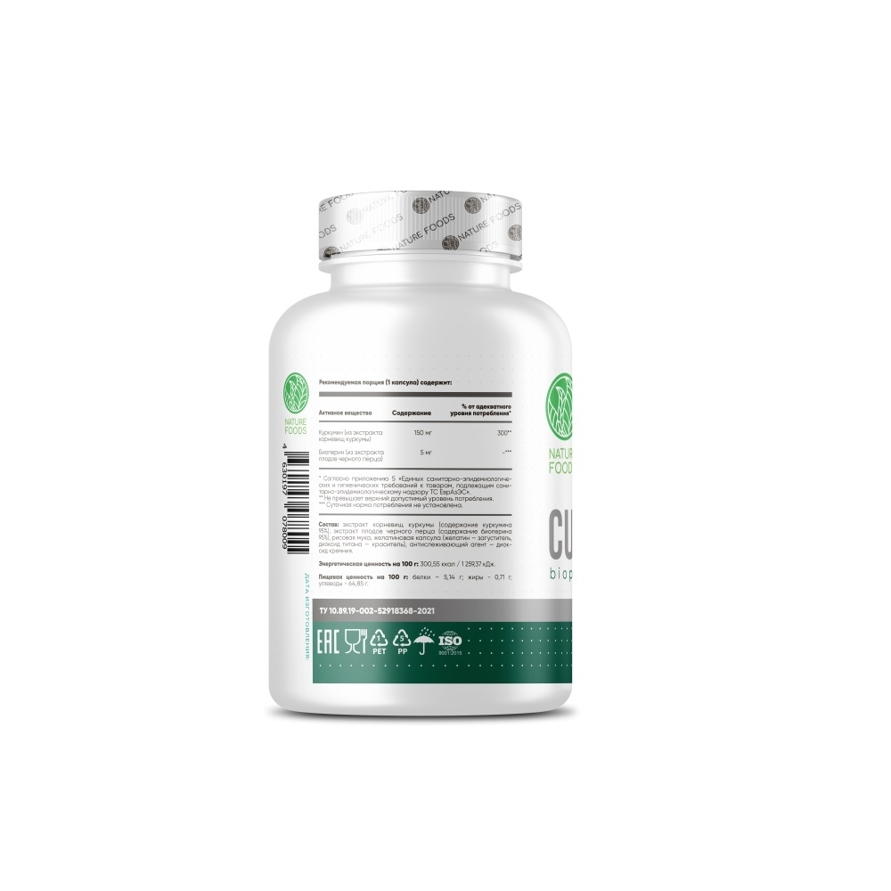 Антиоксидант Nature Foods Curcumin + Bioperine 60 капсул
