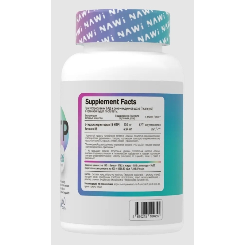 Антиоксидант NAWI 5HTP + B6 60 капсул