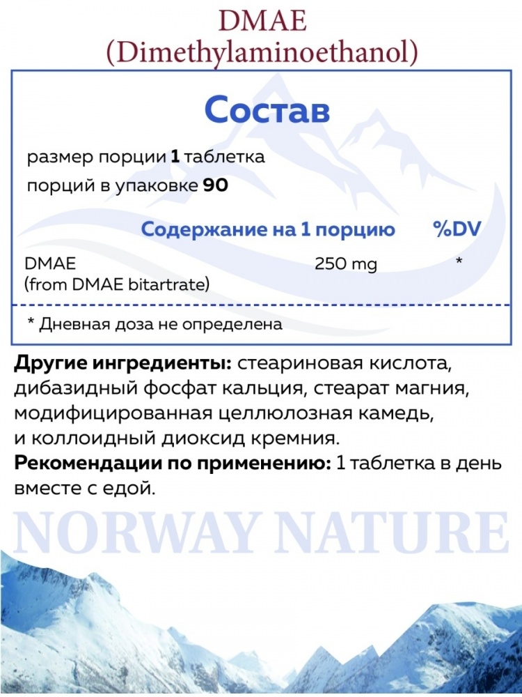 Интернет-магазин Body-Pit.Life предлагает купить Антиоксидант Norway Nature DMAE 250 мг 90 таблеток в Нерюнгри.