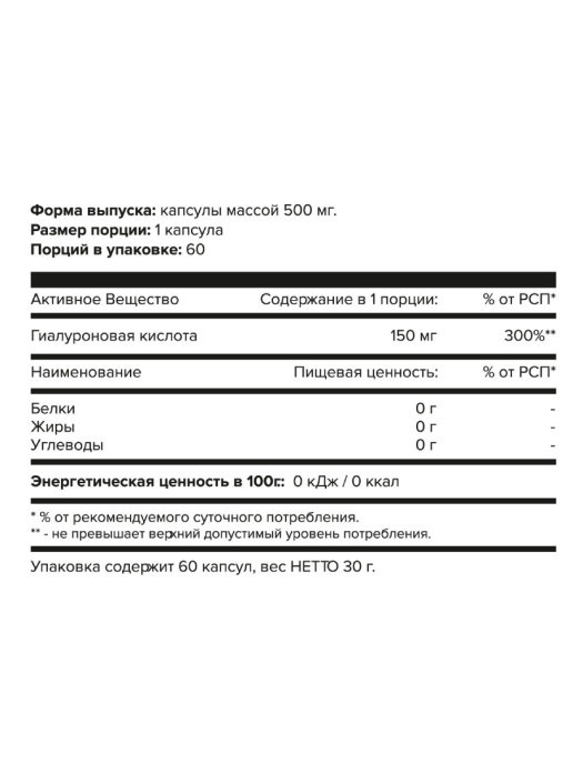 Витамины aTech Nutrition Hyaluronic acid 150мг 60 капсул