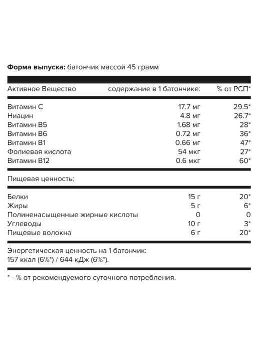 Батончики Ёбатон с высоким содержанием белка 33% и клетчатки, позволят быстро утолить голод, а сочетание разных видов протеинов будут длительное время являться надежными источниками энергии. Оптимальный продукт для похудения, никаких лишних калорий. В состав батончиков от ТМ "ё/батон" входят 8 важнейших витаминов и минералов для укрепления иммунитета и защитных сил организма, различные виды протеина, клетчатка и особые активные компоненты. Важно, что они предназначены не только для спортсменов, а для всех людей, следящих за своим питанием, кому заменяют вредные сладости и выпечку в течение дня.