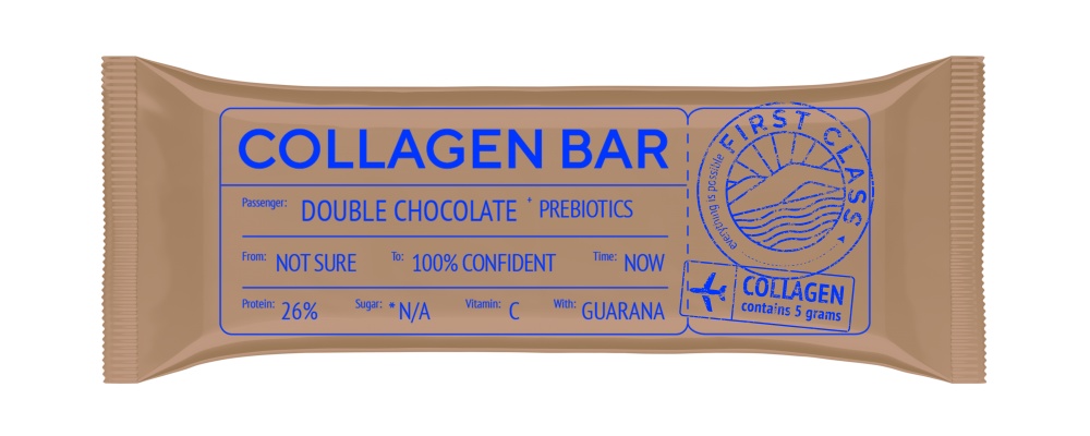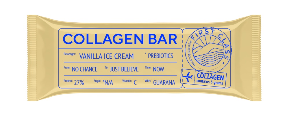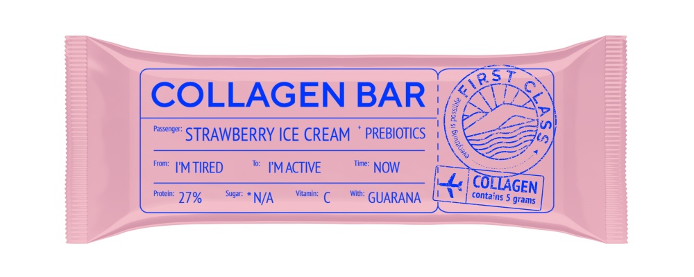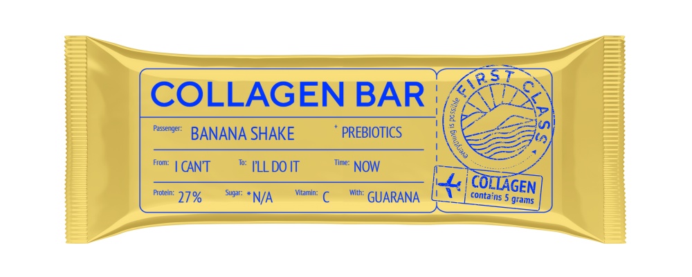 Ваш образ жизни — ваш выбор. Включить в него вкусный перекус никогда не было так легко — Collagen Bar весом всего 35 г. станет вашим незаметным спутником на тренировке, в поездке на пляж или велопрогулке. Коллагеновый батончик Collagen Bar приглашает отправиться в будущее, где вы чувствуете себя лучше, успеваете больше, перекусываете вкуснее. В нем 27% белка и 5 г коллагена для активной жизни и здорового тела, мощный антиоксидант витамин С, борец с хронической усталостью — экстракт гуараны и пребиотики, с которыми пищеварение работает как часы. Не останавливайтесь, начав движение к отличной фигуре — Collagen Bar двигает вместе с вами!