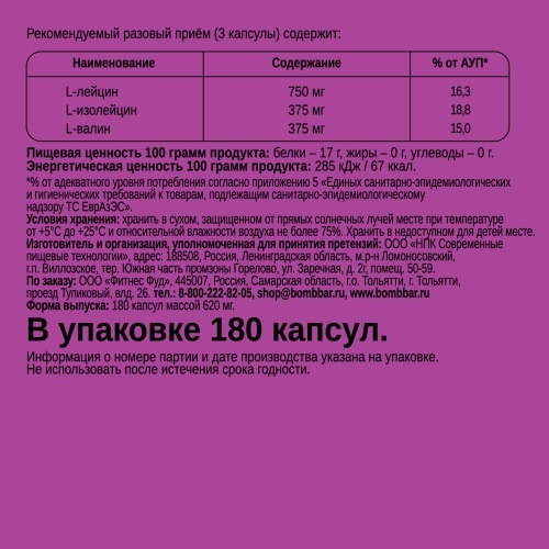 Интернет-магазин Body-Pit.Life предлагает купить БЦАА Bombbar BCAA 2:1:1 180 капсул в Нерюнгри.