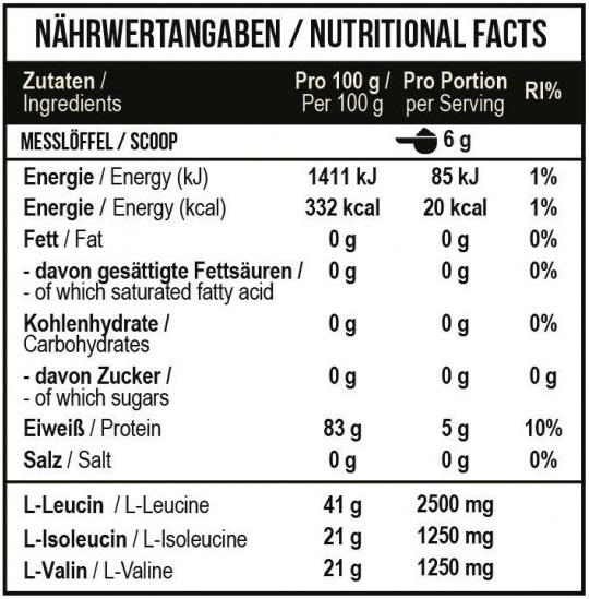 • из каждой порции вы будете получать 5 грамм таких аминокислот в соотношении 2-1-1;