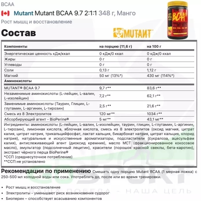 - БЦАА Mutant