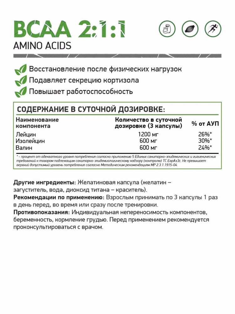 Интернет-магазин Body-Pit.Life предлагает купить БЦАА NaturalSupp BCAA 2:1:1 120 капcул в Нерюнгри.
