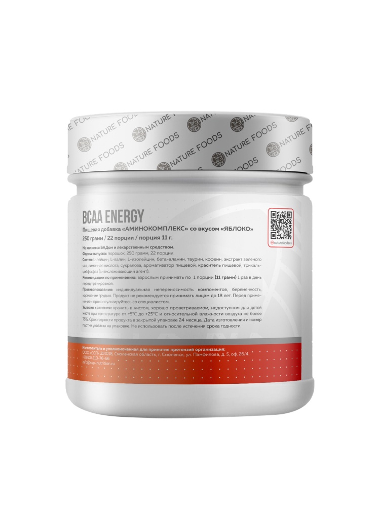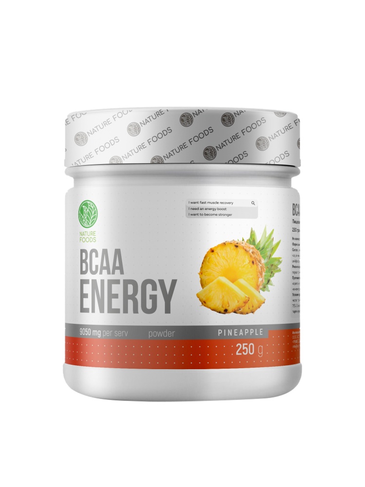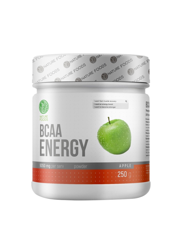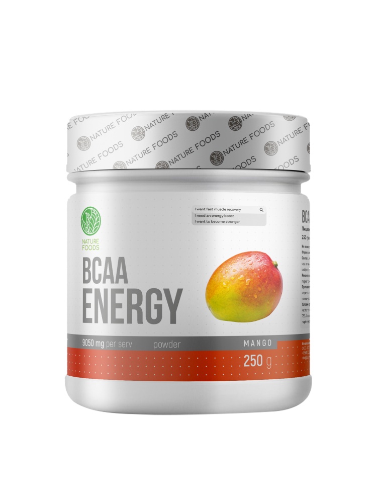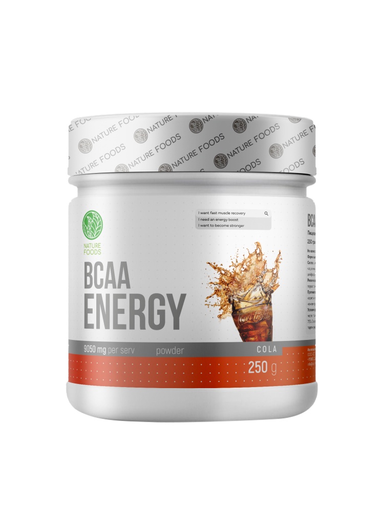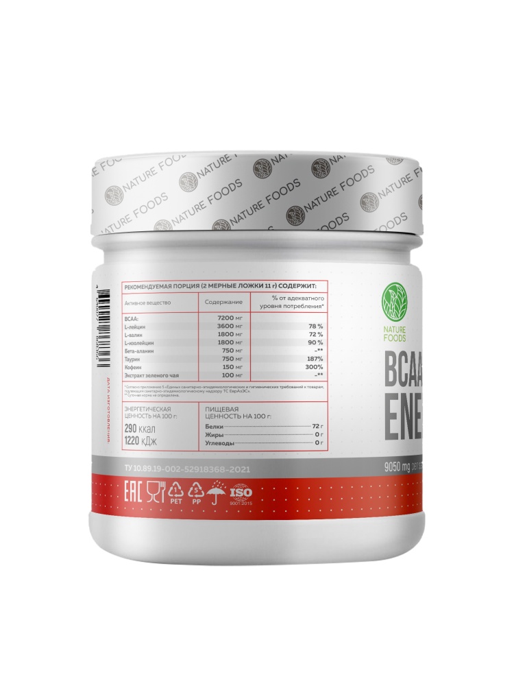 Nature Foods BCAA Energy – это комплекс незаменимых аминокислот (лейцина, изолейцина, валин) и натуральных энергетических компонентов (таурин, кофеин, экстракт зеленого чая), которые работая вместе повышают уровень энергии, улучшают физические результаты во время тренировок и способствуют мышечному восстановлению после тренировок.