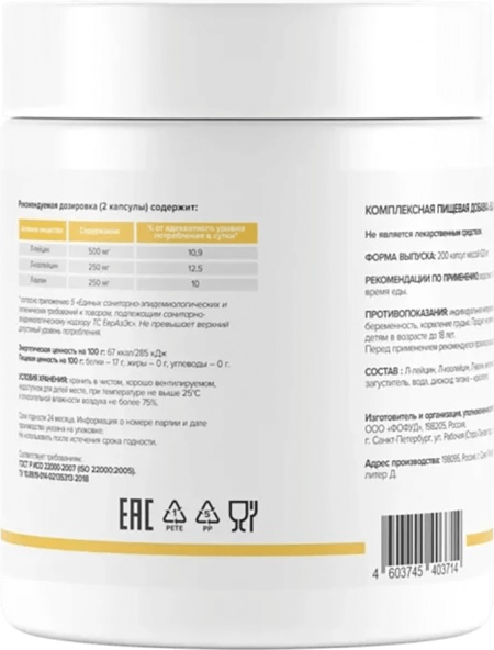| L-Лейцин: | 500 мг |