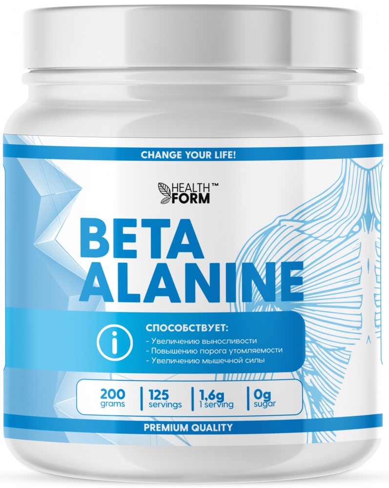 Бета-аланин Health Form отлично сочетается с другими добавками: энергетическими комплексами, кофеином и таурином, креатином, цитруллином и аргинином, BCAA.