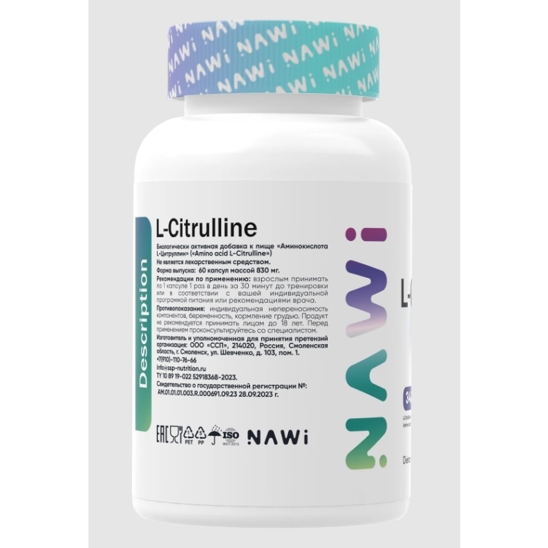 Интернет-магазин Body-Pit.Life предлагает купить Аминокислота NAWI L-Citrulline Malate 342 мг 60 капсул в Нерюнгри.