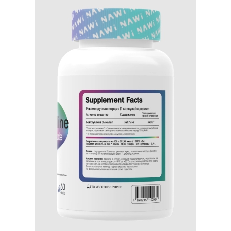 Аминокислота NAWI L-Citrulline Malate 342 мг 60 капсул