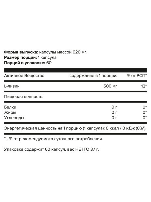 Аминокислота aTech Nutrition L-Lysine 620 мг 60 капсул