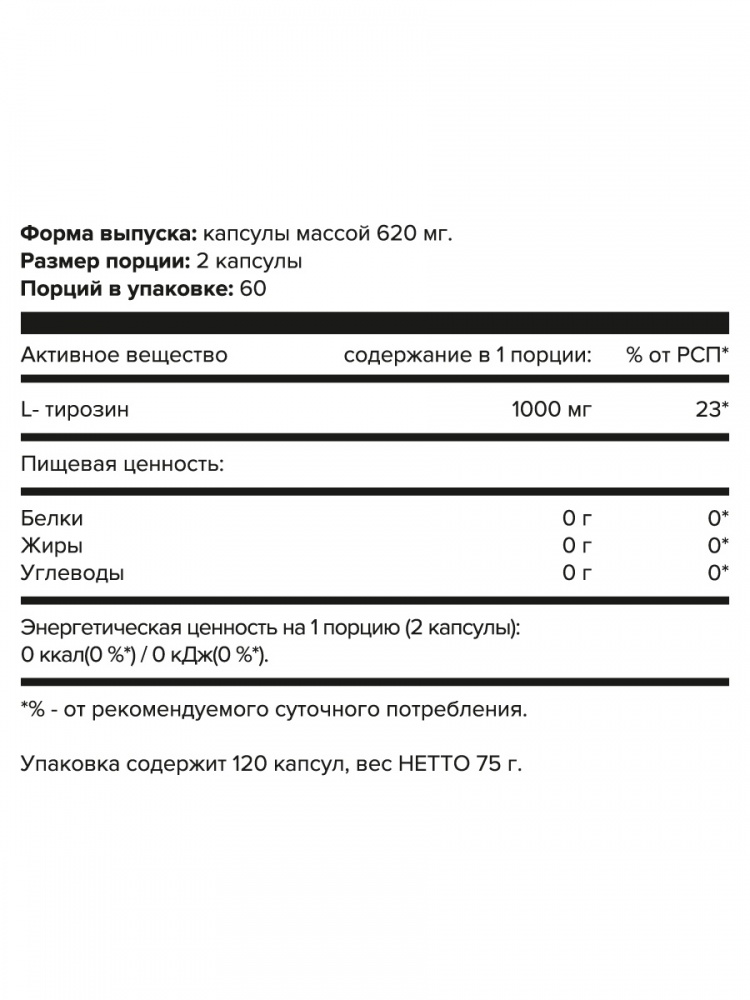 Состав: аминокислота L-тирозин, твердая капсула (желатин).