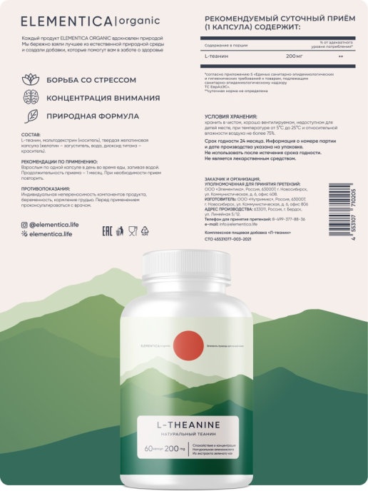 Интернет-магазин Body-Pit.Life предлагает купить Аминокислота ELEMENTICA L-Theanine 60 капсул в Нерюнгри.