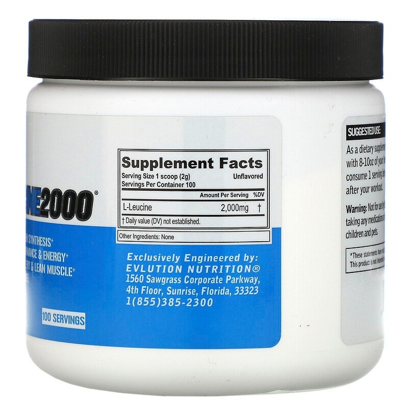 Рекомендации по применению: В качестве пищевой добавки смешайте 1 мерную ложку L-LEUCINE2000® с 8-10 унциями напитка по вашему выбору. Для достижения наилучших результатов употребляйте 1 порцию между приемами пищи и 1 порцию сразу после тренировки.