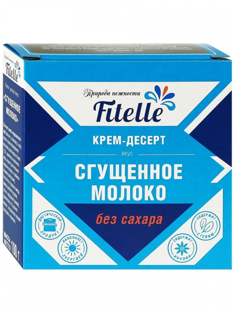 Состав: смесь подсластителей (мальтит, стевиозид), вода, молоко сухое обезжиренное с жирностью не более 1,5%, заменитель молочного жира, инулин, загустители (гуаровая камедь, камедь рожкового дерева, пектин, кукурузный крахмал), ароматизатор "Сгущенное молоко", натуральный пищевой.