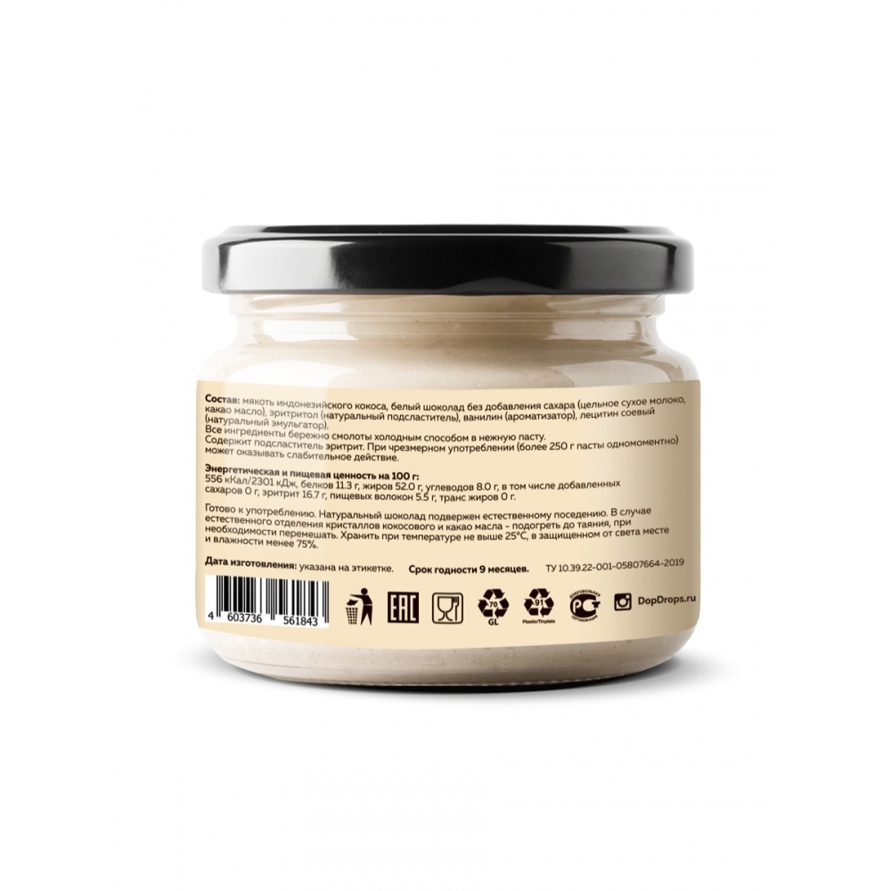 Интернет-магазин Body-Pit.Life предлагает купить Паста DopDrops ореховая белый шоколад-кокос 250 гр в Нерюнгри.