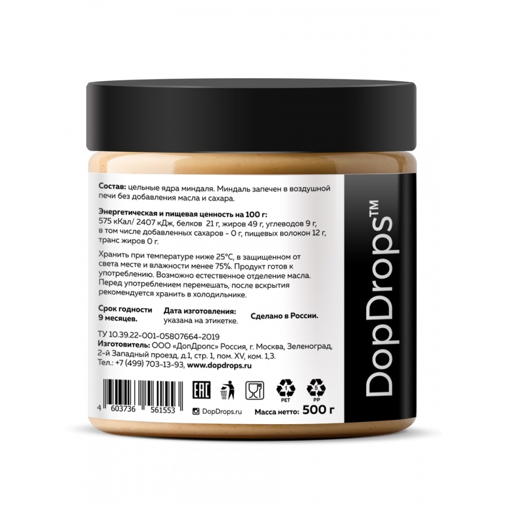 Паста DopDrops ореховая миндаль 500 гр