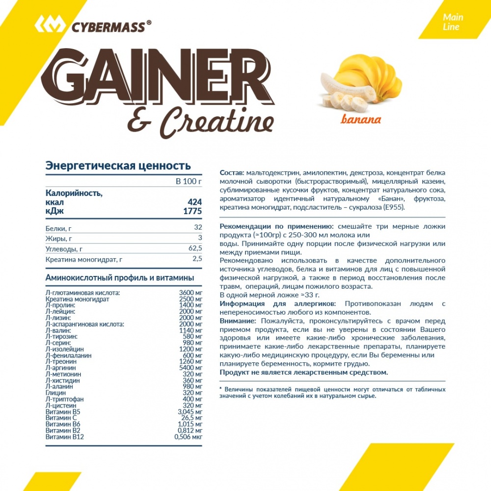 Гейнер CyberMass Gainer+Creatine 1500 гр