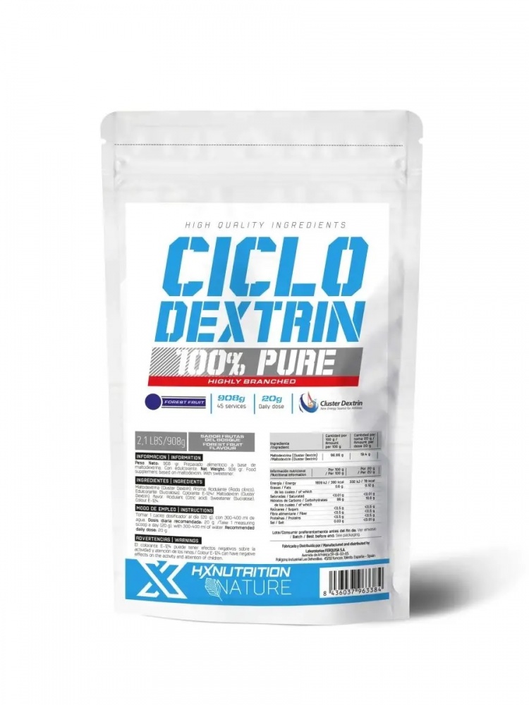 Циклодекстрин HX Premium ценится за его высокую эффективность и скорость всасывания, два ключевых фактора для спортсмена. Это означает, что этот продукт рекомендуется для занятий спортом с высокими затратами энергии и интенсивных тренировок, поскольку он обеспечивает непропорциональный источник энергии.