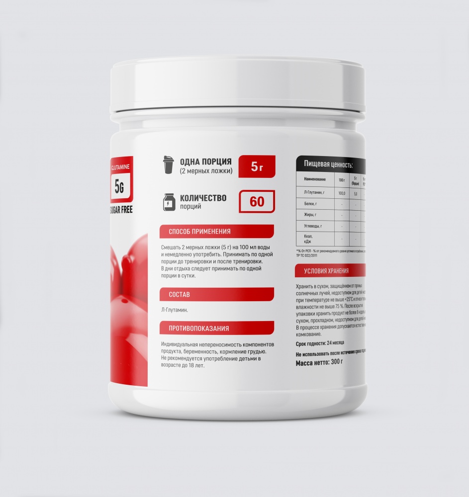 | Л-глутамин, г: | 5,0 |