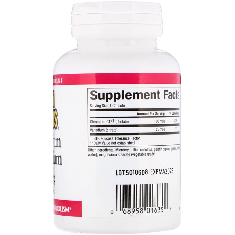 Хром и ванадий действуют синергетически, поддерживая здоровый уровень сахара в крови, уже находящийся в пределах нормы, и помогают организму усваивать белки, углеводы и жиры.