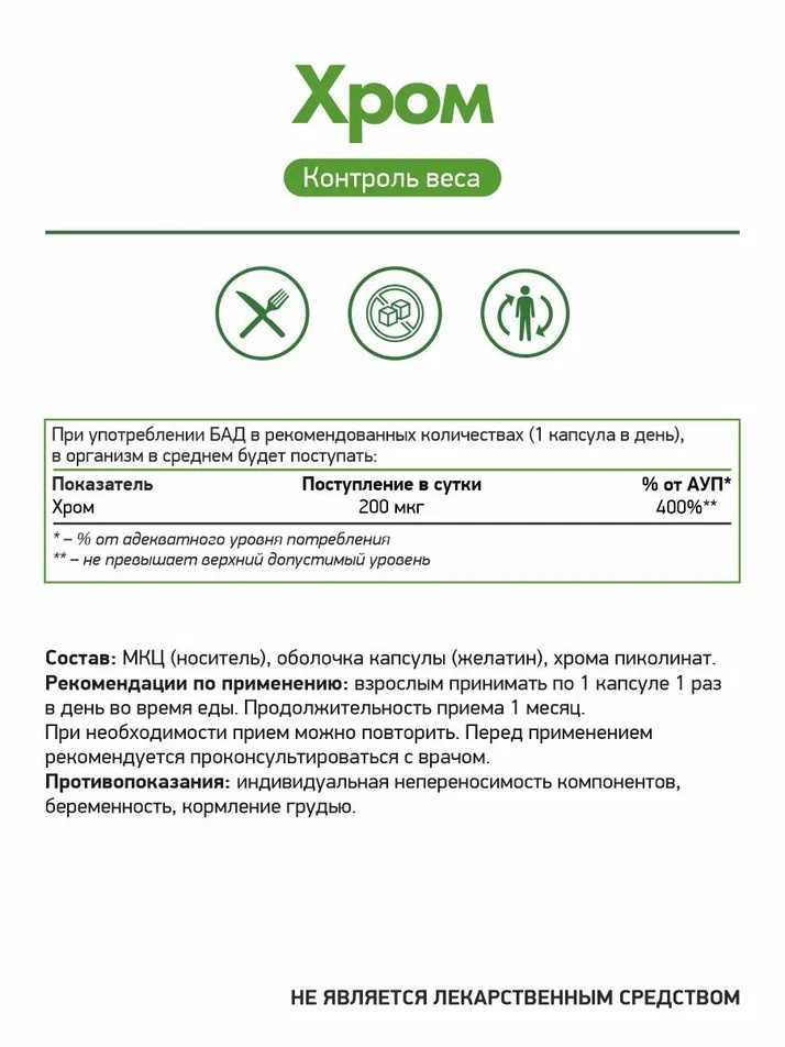 Пиколинат хрома - комплексная пищевая добавка, которую принимают вместе с пищей для поддержания нормального уровня хрома в организме, помогает избавиться от лишнего веса, регулирует содержание сахара в крови, предупреждает развитие атеросклероза и положительно действует на нервную систему. Именно поэтому пиколинат хрома активно используется спортсменами, но для женщин будет особенно полезен. Основным действующим компонентом в составе пиколината хрома является трехвалентная форма хрома. Также в него входит пиколиновая кислота, но как такового влияния на организм она не оказывает, а только улучшает усвояемость хрома. Пиколинат хрома оказывает благотворное влияние на состояние сердечно-сосудистой системы, снижает риск развития ожирения, способствует более быстрому восстановлению сил после интенсивной физической нагрузки, активизирует иммунную систему и функциональную активность головного мозга, помогает регулировать свой аппетит и, в частности, тягу к сладким продуктам, позволяет укрепить мышечную систему.