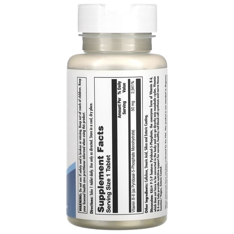 P-5-P производства компании KAL — это продукт, созданный для поддержки здоровья и улучшения общего самочувствия. Каждая таблетка содержит 50 миллиграммов пиридоксаль-5-фосфата, которая обладает высокой степенью усвояемости.
