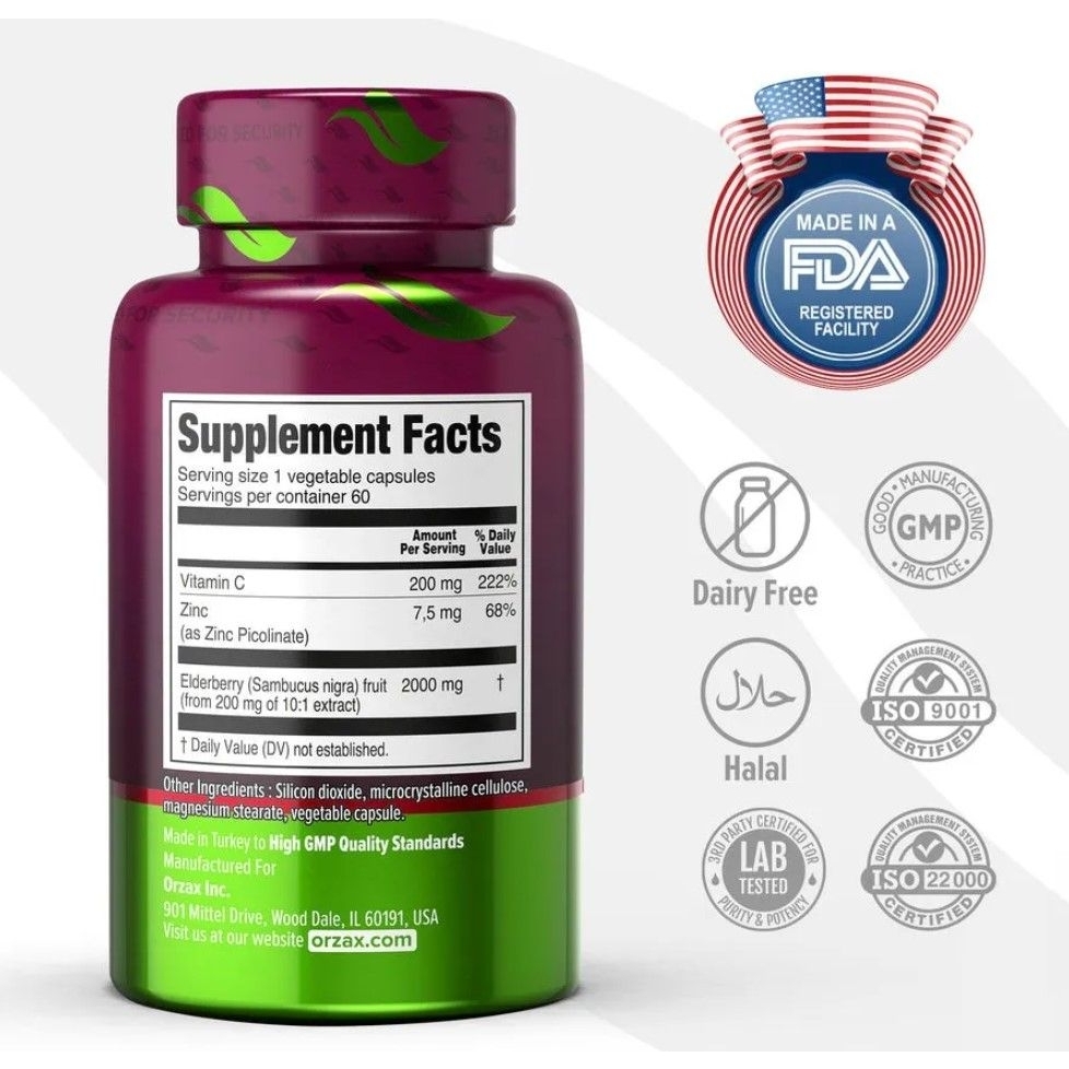 Витамины Orzax Elderberry Sambucus 60 капсул