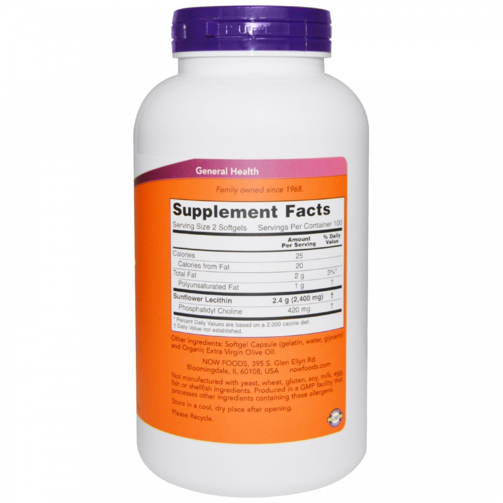Витамины NOW Лецитин из подсолнечника 1200 мг 200 капсул