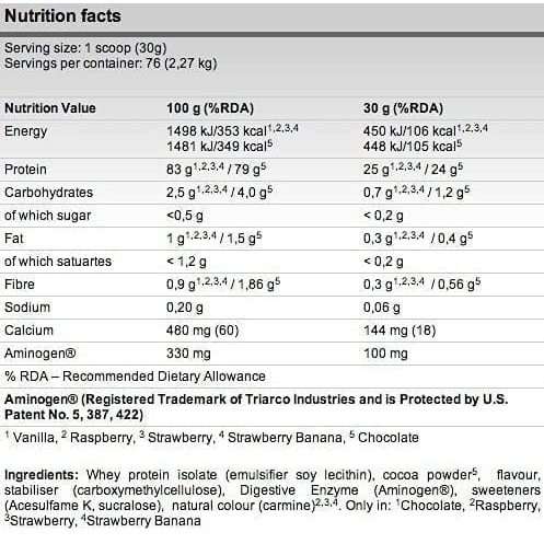 Использование FA GOLD WHEY PROTEIN ISOLATE является несомненной поддержкой в достижении целей здорового и разнообразного питания. Формула содержит полезный сывороточный протеин в виде исключительно чистого изолята WPI. Продукт был подготовлен в соответствии с самыми высокими стандартами и с помощью инновационного многоступенчатого процесса микрофильтрации с поперечным потоком. Это гарантирует получение высококачественного протеина без ненужных сахарных и жировых добавок. Продукт выпускается в виде легкорастворимого порошка, который при приготовлении на воде или обезжиренном молоке позволяет приготовить невероятно вкусный коктейль с высоким содержанием белка. Его легкая растворимость позволяет использовать его в качестве дополнения к другим блюдам. Каковы преимущества изолята FA GOLD WHEY PROTEIN? Каждая порция продукта содержит 25 г высококачественного изолята сывороточного протеина WPI. Высокая концентрация полноценных белков без добавления сахара или жиров Высокое содержание ценных аминокислот - до 5,4 г комплекса BCAA на порцию! Белок способствует росту и поддержанию мышечной массы, что в сочетании со здоровым питанием и регулярными тренировками может помочь вам достичь спортивной фигуры Белок способствует поддержанию здоровья костей Полноценный белок является ценным источником незаменимых аминокислот, которые могут поддерживать эндогенные процессы синтеза белка и регенерации после тренировки.