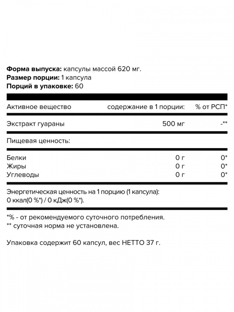 Энергетик aTech nutrition Экстракт гуараны 60 капсул