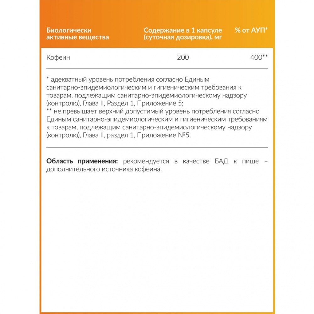 Состав: Кофеин безводный, микрокристаллическая целлюлоза, капсула (желатин).