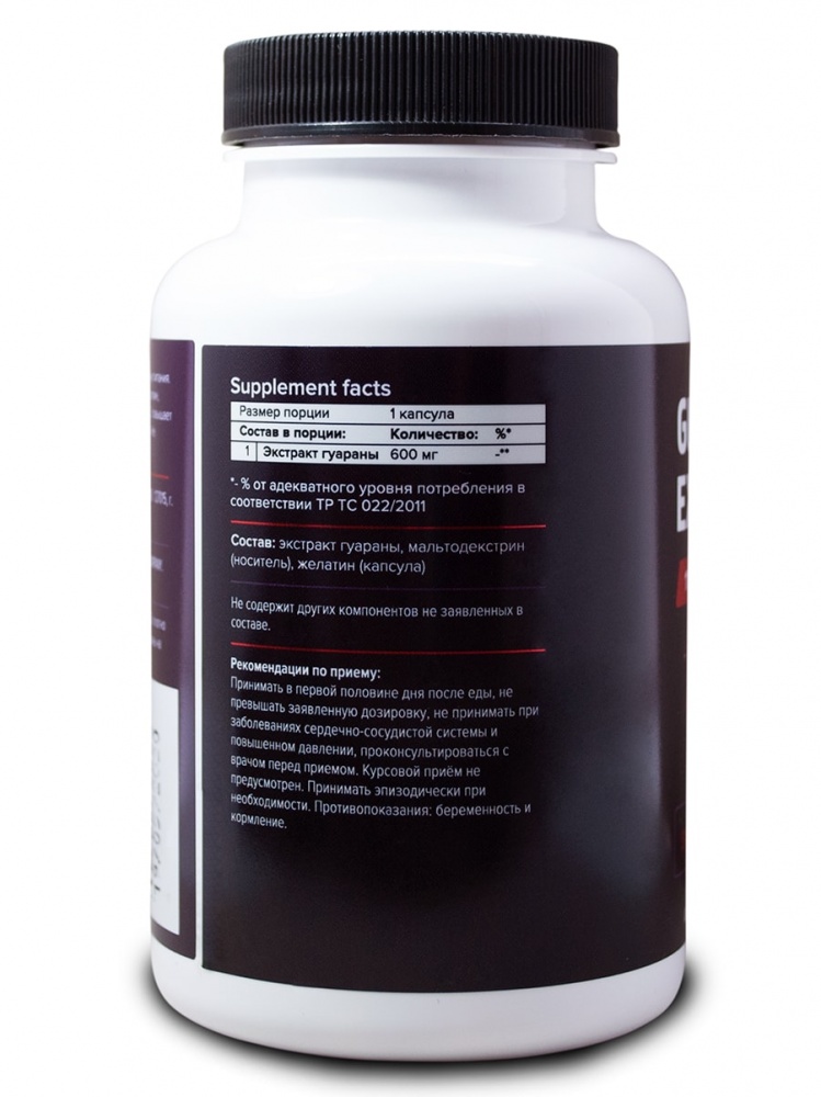 Кофеин (Экстракт гуараны, 11% экстракт, 600 мг): 66 мг